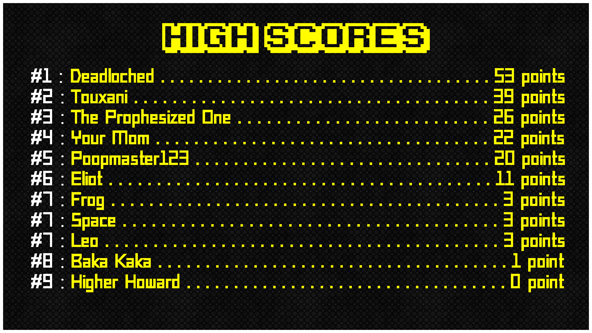 Through participating in weekly tournaments and championships in Montreal, QC, our players earn tournament points. Below are the current high scores based on points accumulated by our IDOLS fanatics !